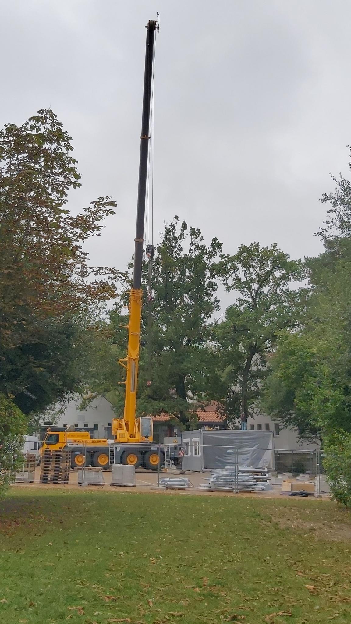 Heute staunten die Kinder nicht schlecht, als sie den riesigen Kran auf unserem Schulhof sahen. Der Aufbau der Mobilklassen (zwei Räume mit einem kleinen Flur) hat heute begonnen. Deshalb hatten die Kinder eine „Regenpause“ und durften in der Klasse spielen. Die Zeit wurde zum Malen, Basteln, Bauen, Spielen, Quatschen und Musikhören genutzt. Außerdem gab es noch das ein oder andere Mini-Workout. 😊
